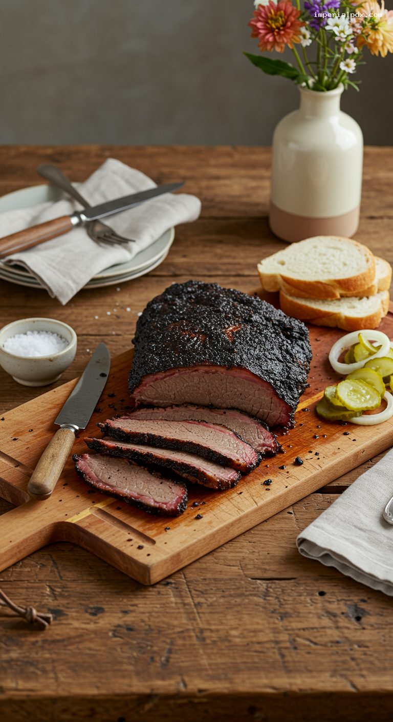 - Pantry: Whole packer brisket (12–14 lb), kosher salt, coarse black pepper (16-mesh if possible), dill pickle chips, soft white sandwich bread or Texas toast, unwaxed butcher paper or heavy-duty foil, wood chunks or pellets, water