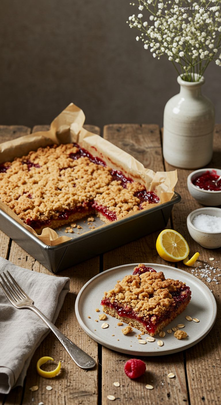 - Blueberry–lemon: swap raspberry jam for blueberry jam; add 1 tsp lemon zest to the crumble.