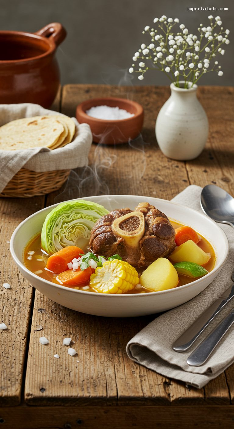 - Classic Mexican comfort: tender beef shank and marrow in a bright tomato-onion broth.