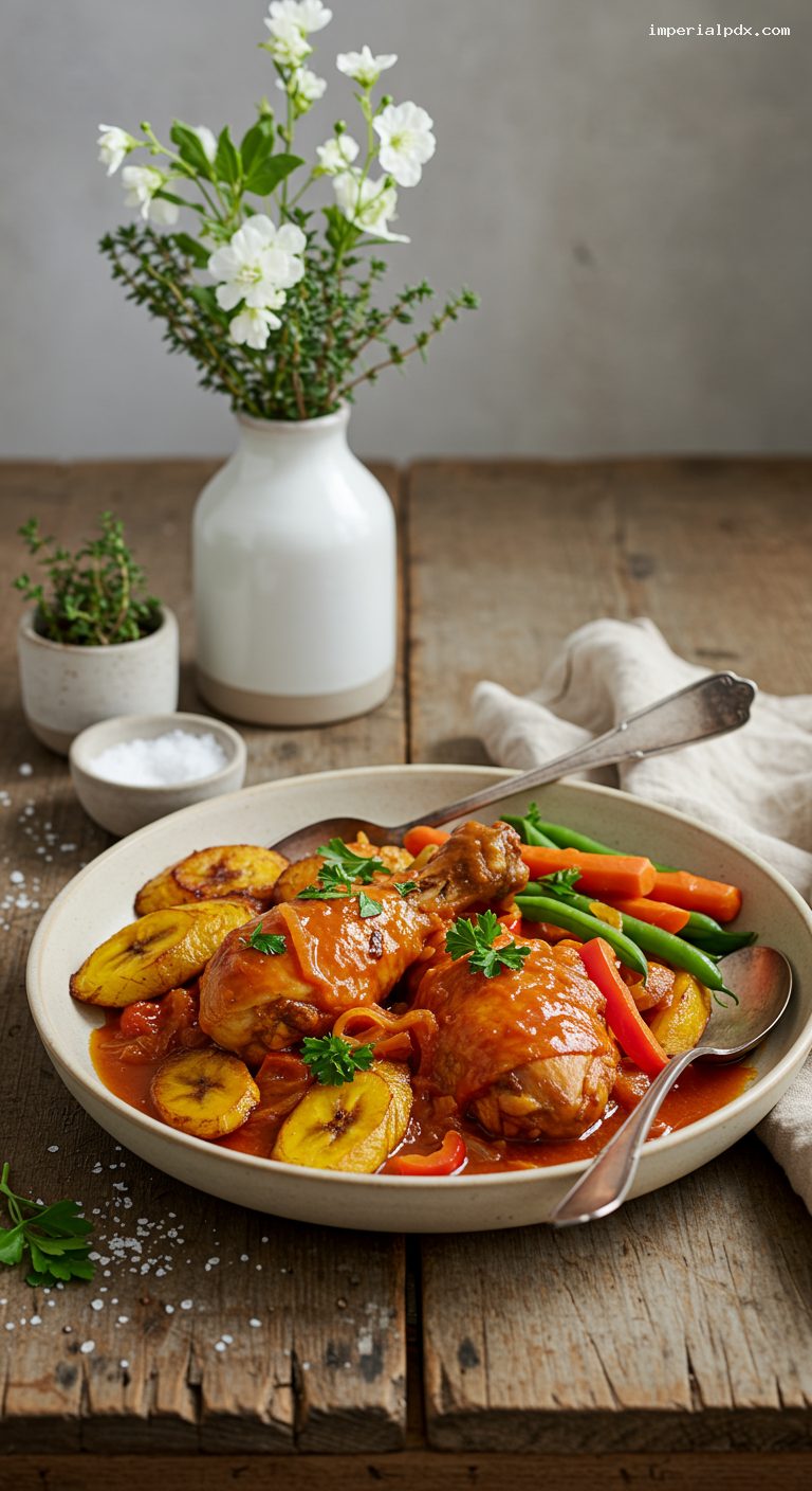 Gently fold the fried plantains into the pot, using a wide spoon to avoid breaking them. Simmer 1–2 minutes to warm through. Turn off the heat, sprinkle with chopped parsley or basil, and let rest 5 minutes to allow flavors to mingle. Serve hot, spooning plenty of gravy over each portion.