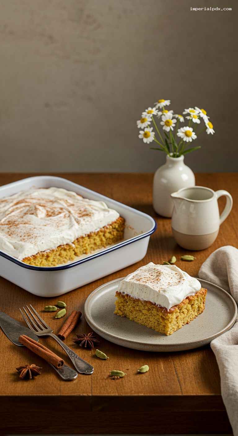 - Classic tres leches comfort meets cozy chai spices for a layered, aromatic dessert.
