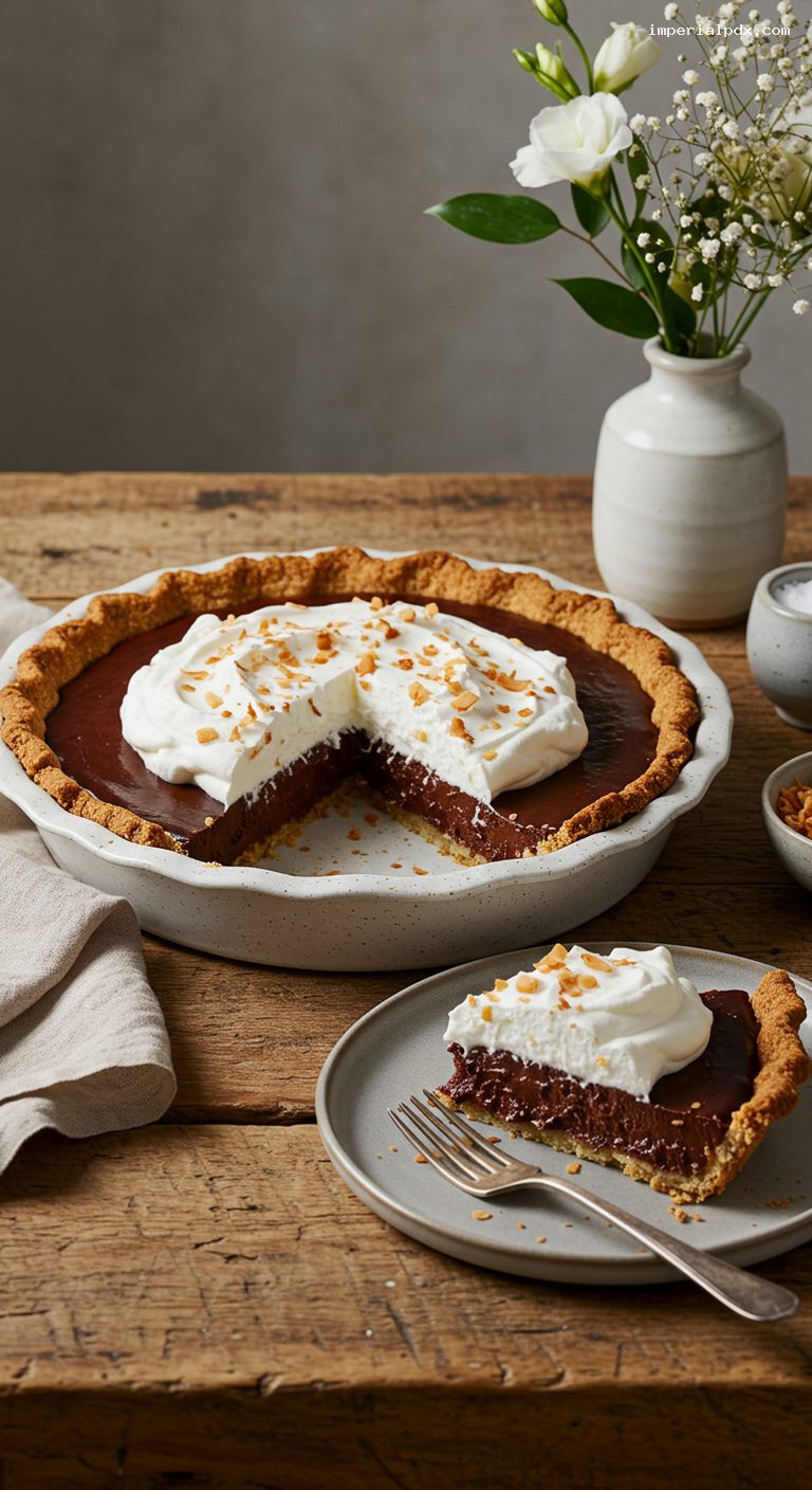 - 3. Chill pie 20–30 minutes (or 10 minutes in the freezer) to set the chocolate surface.