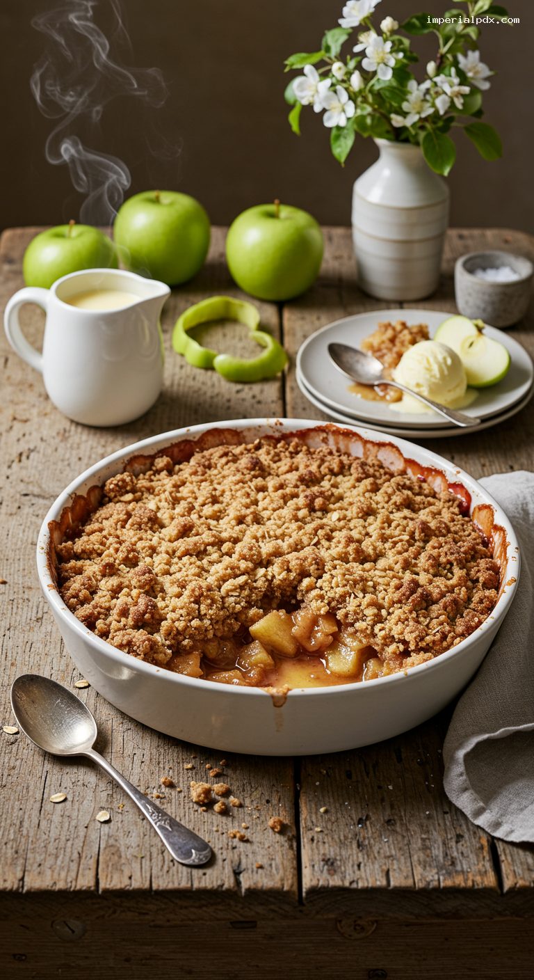 - 6) Bake 40–45 minutes until topping is deep golden and apples bubble at the edges.