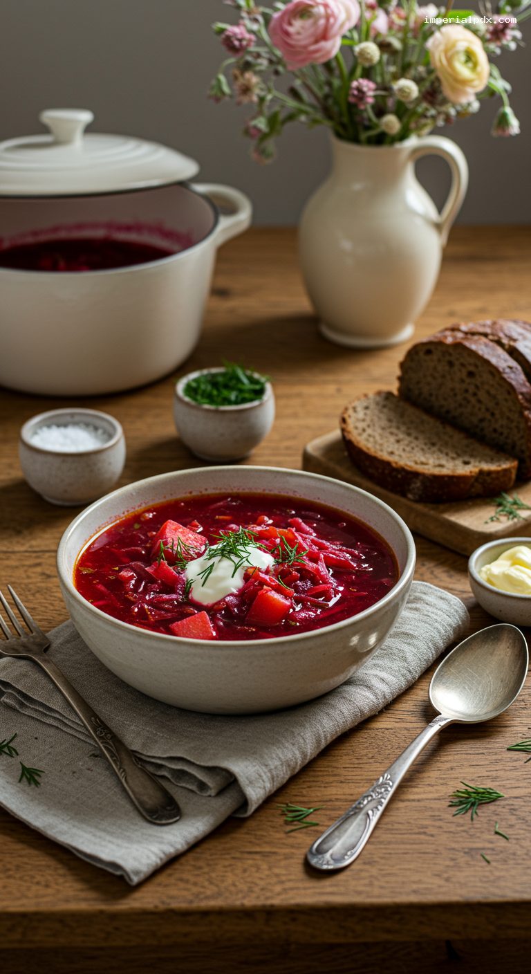 - Balanced with a bright splash of vinegar and fresh dill for classic borscht character.