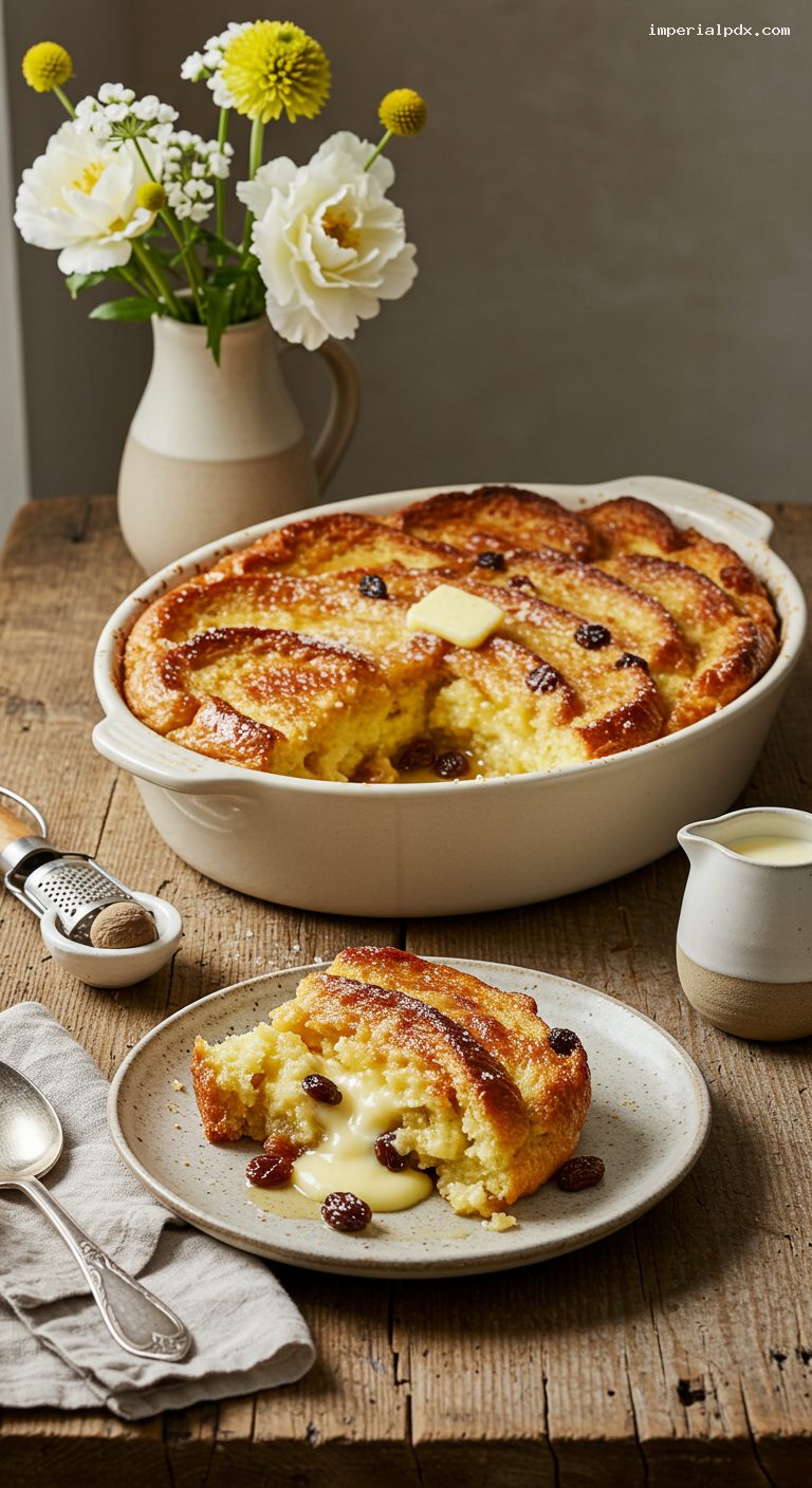 Refrigerate leftovers, covered, for up to 3 days. Reheat portions in a 325°F (165°C) oven for 10–15 minutes or microwave gently until warmed through. To make ahead, assemble the pudding, cover, and chill up to 12 hours; bake straight from the fridge, adding 5–10 minutes to the bake time. Baked pudding can be frozen (tightly wrapped) for up to 1 month; thaw overnight in the refrigerator and reheat in a 325°F (165°C) oven until hot.