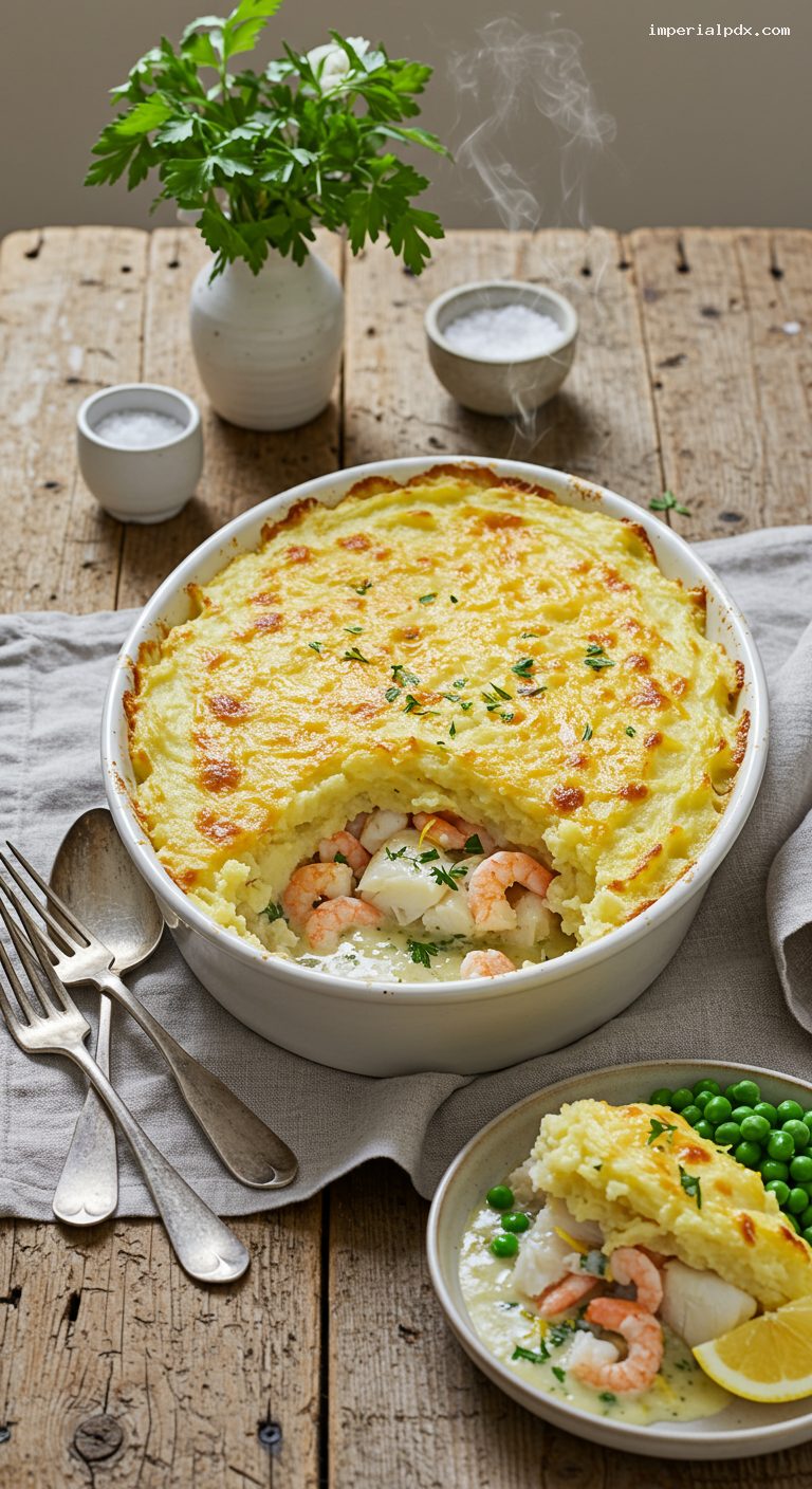 - Comforting classic: silky parsley sauce, tender fish, and a golden, cheddar-topped mash.