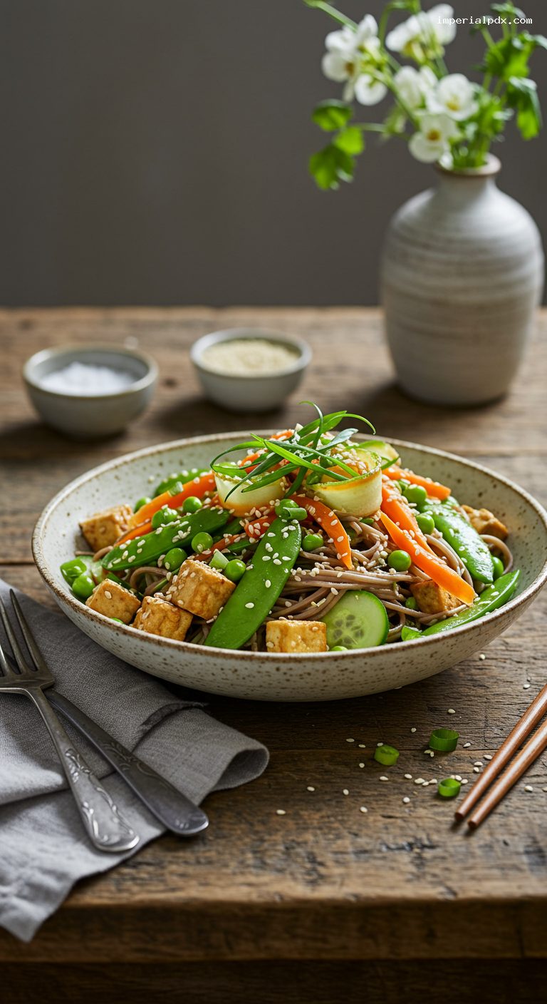 In a large mixing bowl, combine the cooled soba and snap peas, shredded carrots, cucumber, and most of the scallions (reserve some greens for garnish). Add the tofu or chicken. Pour in the dressing and toss gently until every strand and veg piece is coated and glossy. If needed, add a splash of water to loosen and help the dressing cling.