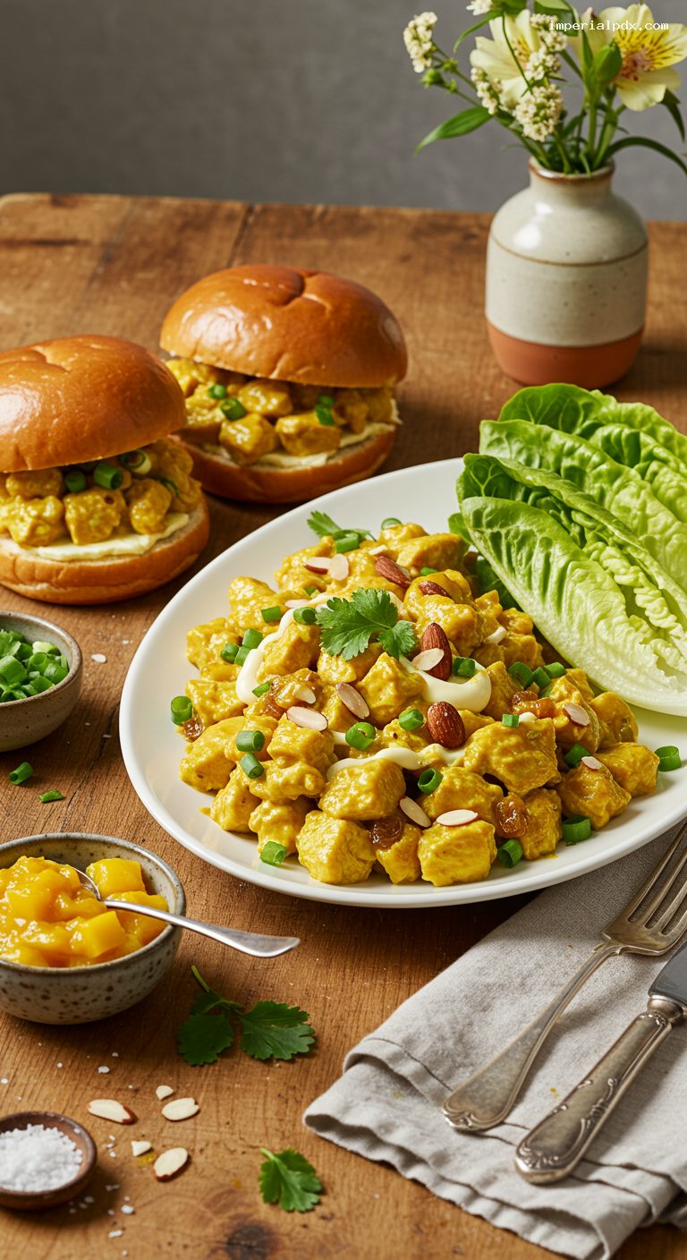 - Pantry: Boneless skinless chicken breasts, mayonnaise, mango chutney, mild curry powder, ground turmeric, Dijon mustard, kosher salt, fine sea salt, black pepper, bay leaves, whole peppercorns, golden sultanas, sliced almonds, soft rolls (if using)