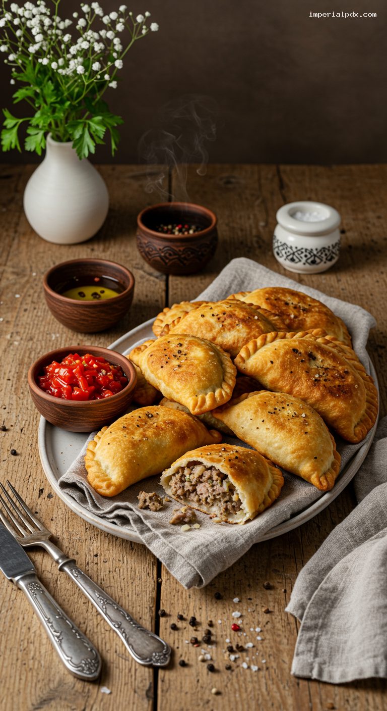 Let chebureki rest 1–2 minutes so the juices settle, then serve immediately with small dishes of vinegar for dipping or a spoonful of fiery adjika. The contrast of bright acidity with the rich, peppery filling is classic and irresistible.