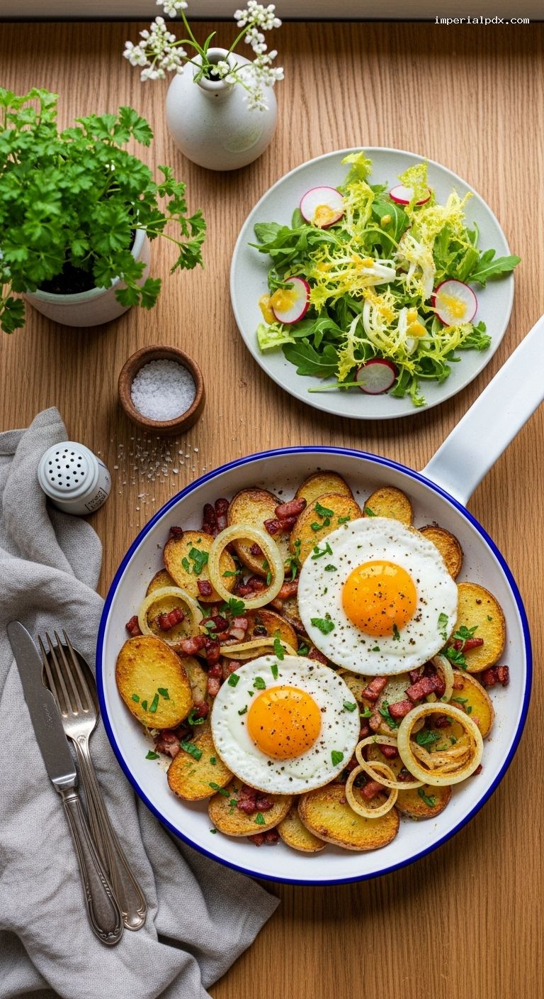 - Caraway and Pickles: Bloom 1/2 tsp caraway seeds in the fat before frying potatoes; finish with 2 tbsp diced cornichons and extra dill.