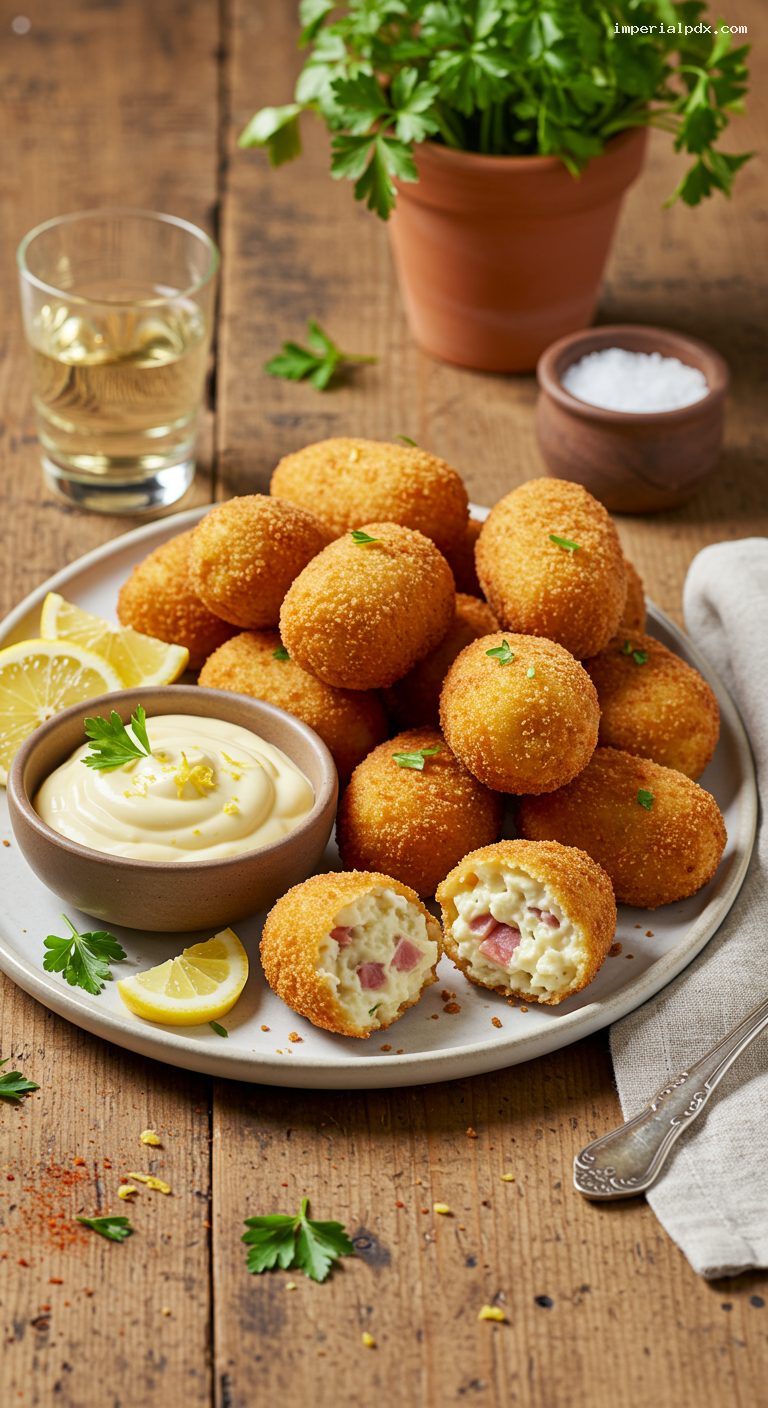 - 7. Mix aioli ingredients; serve warm croquettes with lemony aioli.
