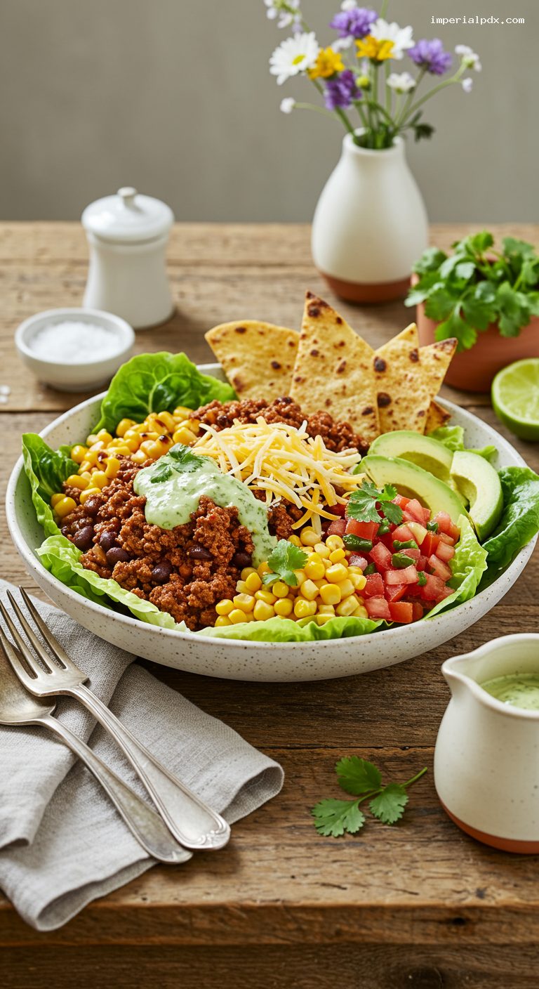 - Layered textures: cool, crisp romaine with warm, spiced meat and ultra-crunchy tortilla strips.