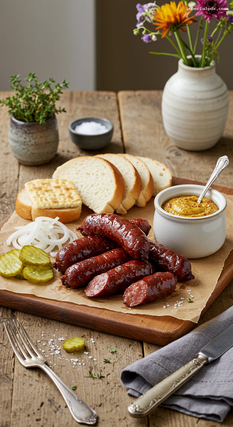 - Pecan-smoked: Hold the grill at 275°F / 135°C with a small chunk of pecan wood and smoke the links 45–60 minutes, then sear 1–2 minutes per side to blister.
