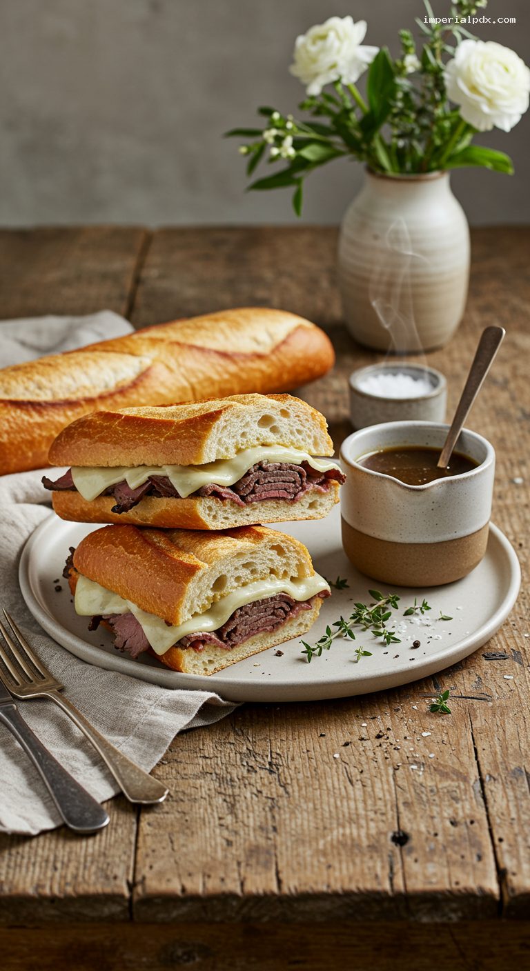 - Swiss Dip: Swap provolone for Swiss or Gruyère and add a smear of Dijon on the bread.