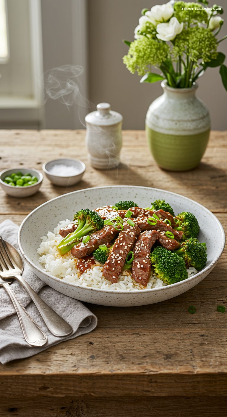 Spoon the beef and broccoli over bowls of hot jasmine rice. Sprinkle with toasted sesame seeds and scallions. Serve immediately while the sauce is silky and the broccoli is crisp.