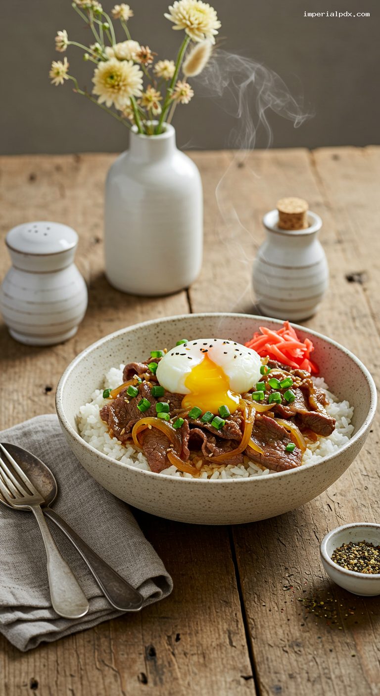 Onsen-Style (Sous Vide): Cook eggs in their shells at 145°F/63°C for 45 minutes. Chill briefly under cold water, crack into a small bowl, and slide onto the gyudon when serving.