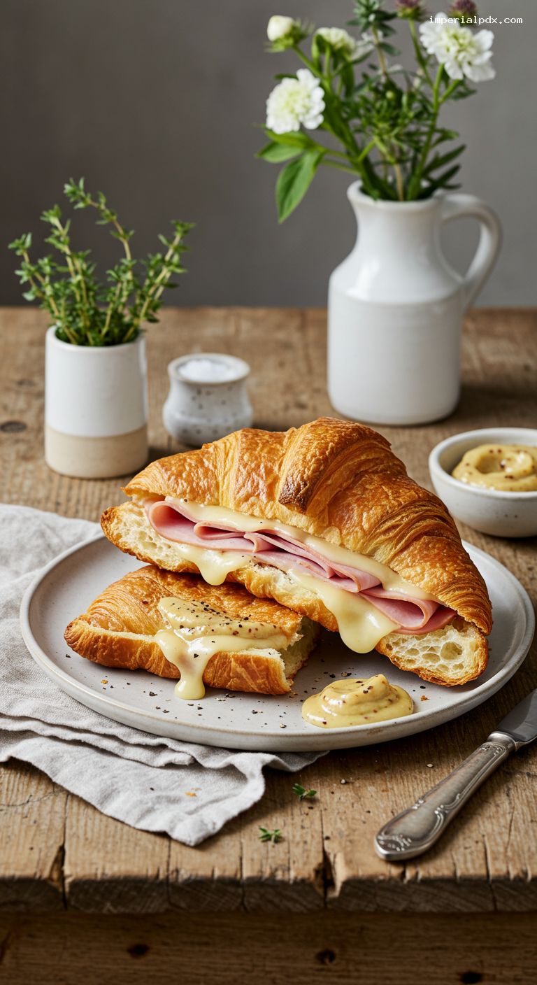- Flaky, buttery croissant meets oozy Swiss and savory ham for a café-worthy melt at home.