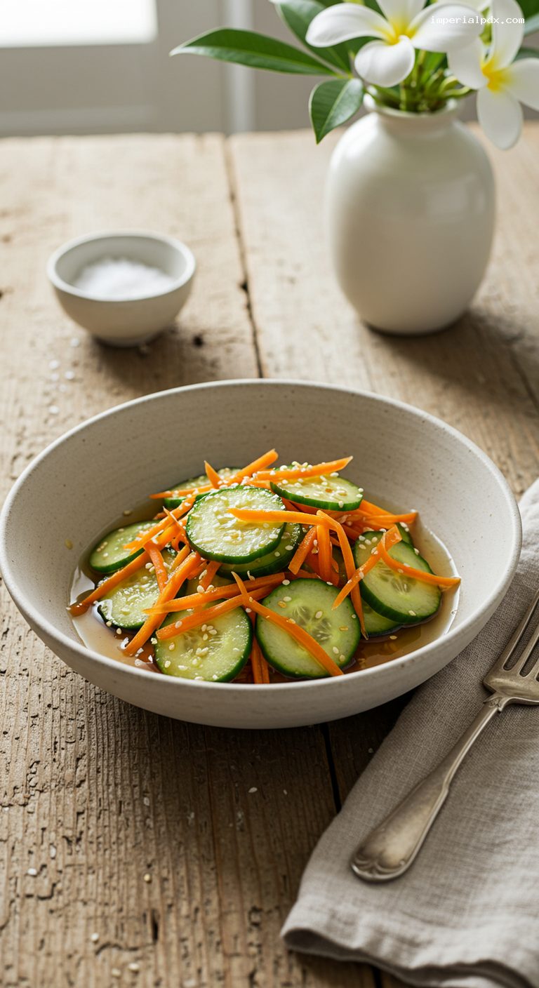 - Ultra-refreshing: crunchy cucumber and carrot in a bright, sweet-tangy dressing.