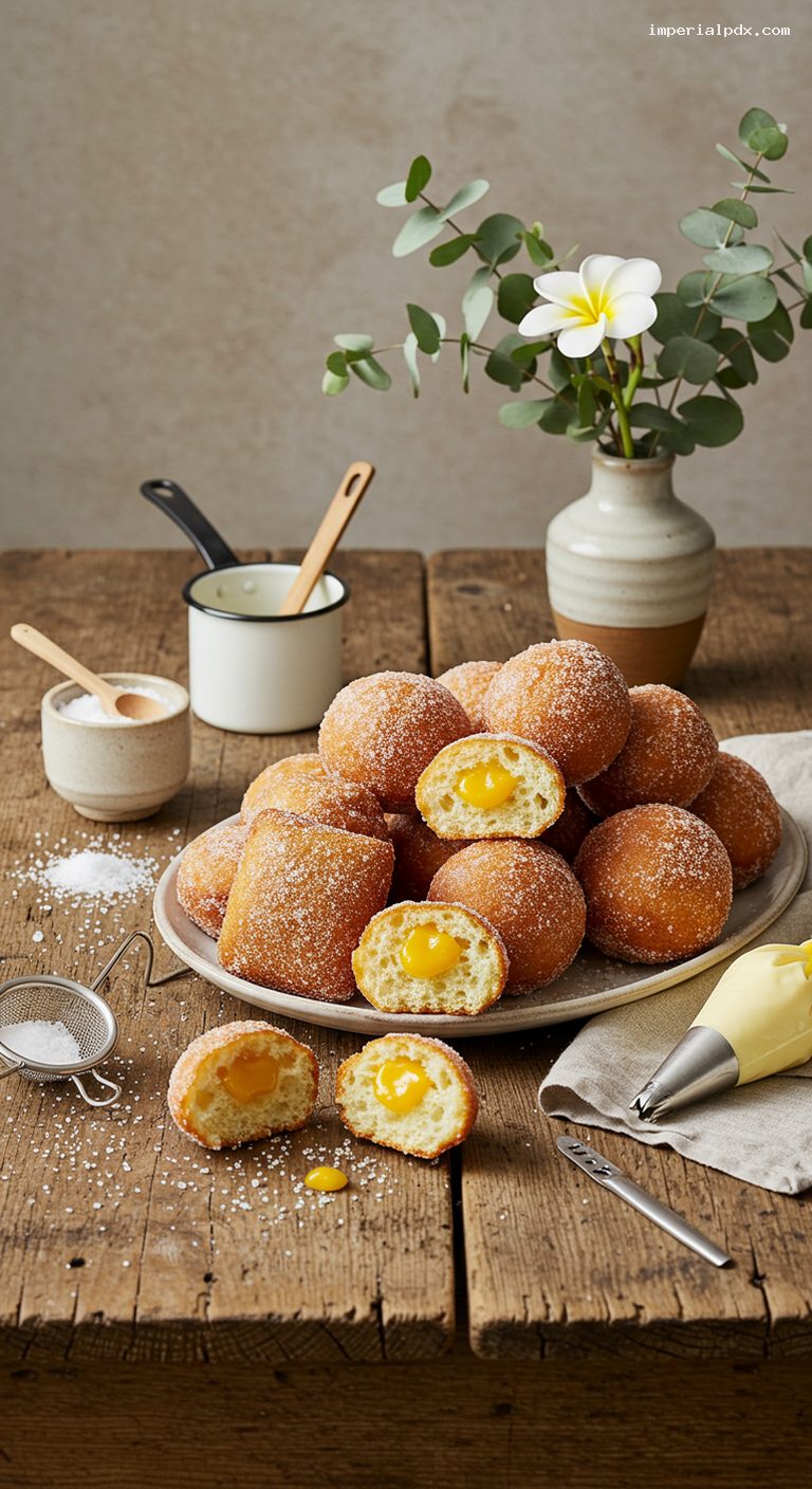 - 7. For filled: pipe 2–3 tsp custard into each using a Bismarck tip. Serve warm.