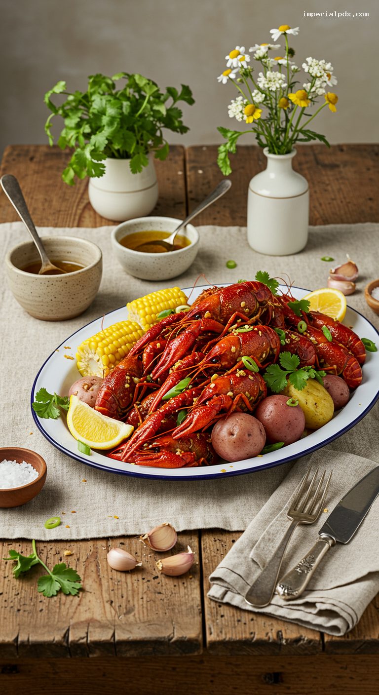 Sprinkle crawfish with chopped cilantro and scallions. Dust lightly with extra Cajun seasoning if you like more pop. Drizzle on a bit more warm garlic-butter sauce for shine. Serve with lemon wedges for squeezing.