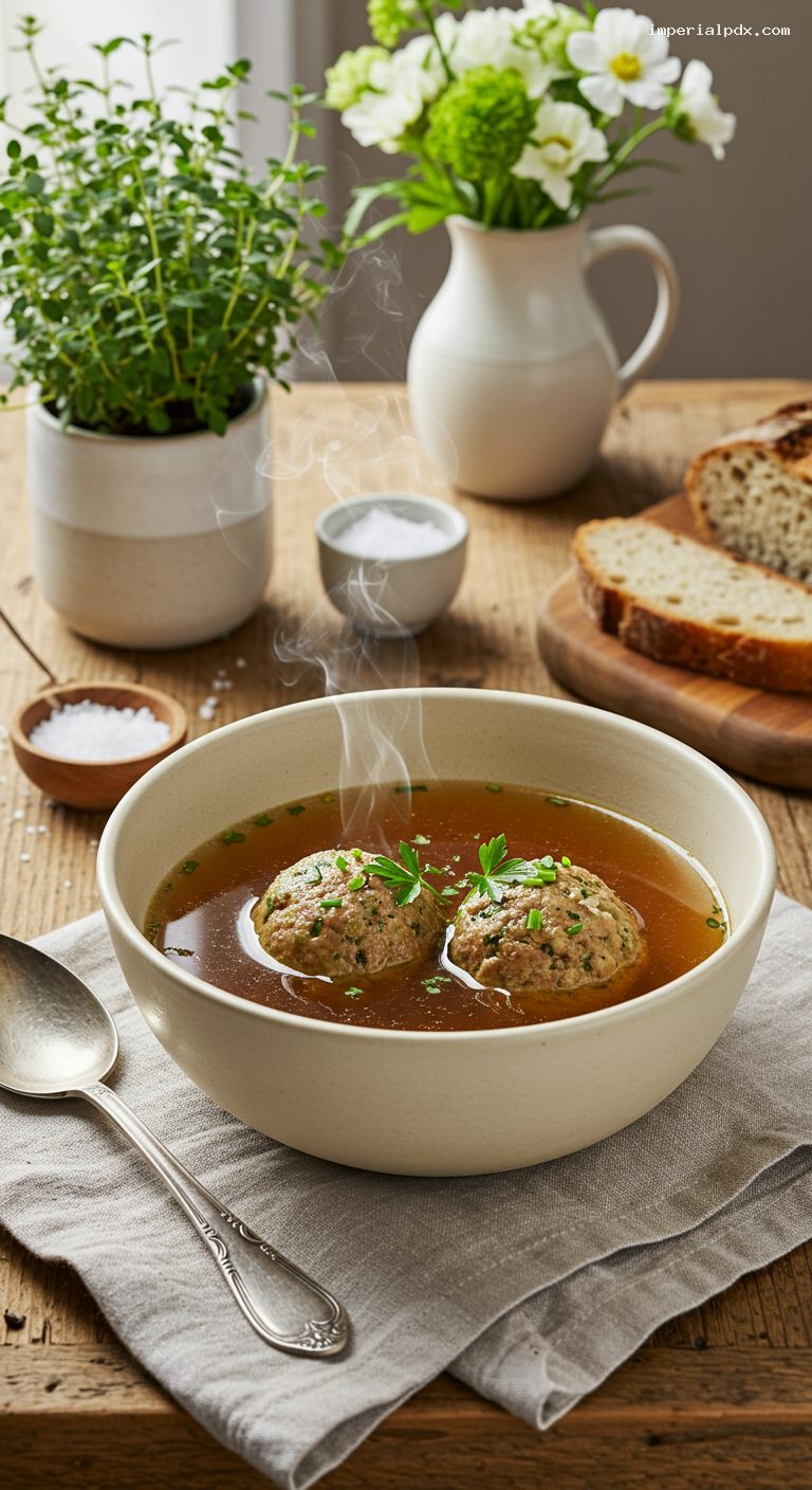 - Classic Bavarian-Austrian comfort: delicate marjoram-scented liver dumplings in clear, rich beef broth.