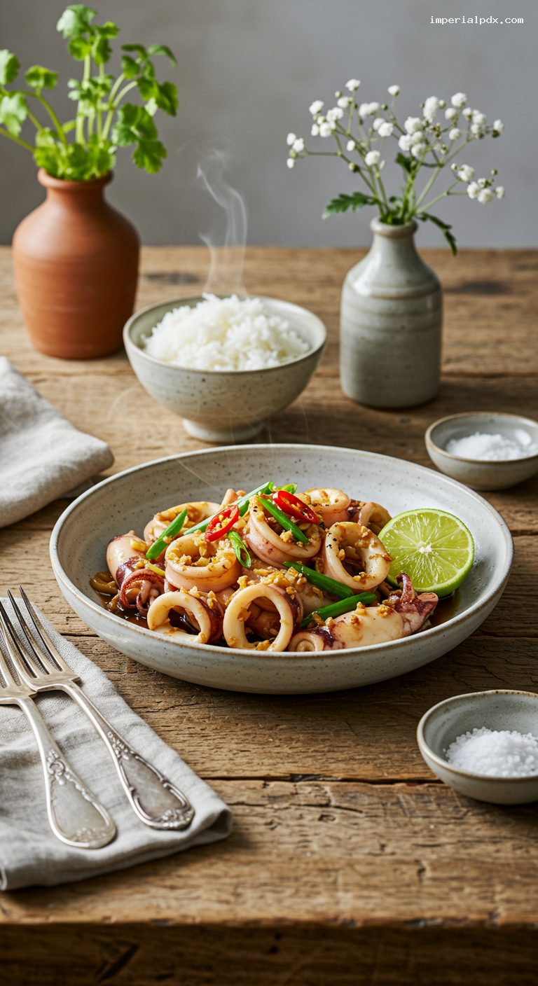 - Pineapple twist: Add 1 cup bite-size pineapple after the squid for a sweet-tart contrast; cook 30–45 seconds.