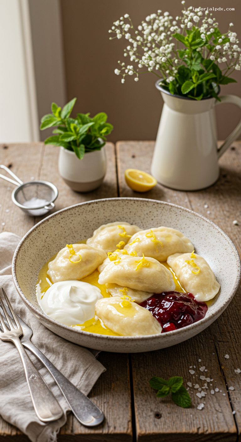 Immediately toss the hot dumplings with the melted butter so they are glossy and don’t stick. Serve right away with generous spoonfuls of sour cream and either a drizzle of honey or a dollop of tart jam. Add lemon zest, a dusting of powdered sugar, or herbs if you like.