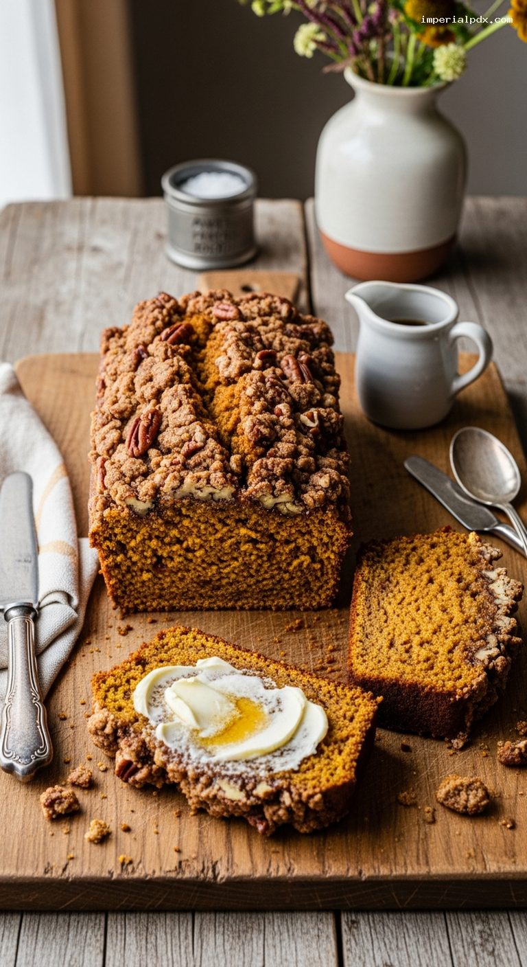 - Classic pumpkin spice warmth with a crisp maple-pecan streusel for texture and aroma.