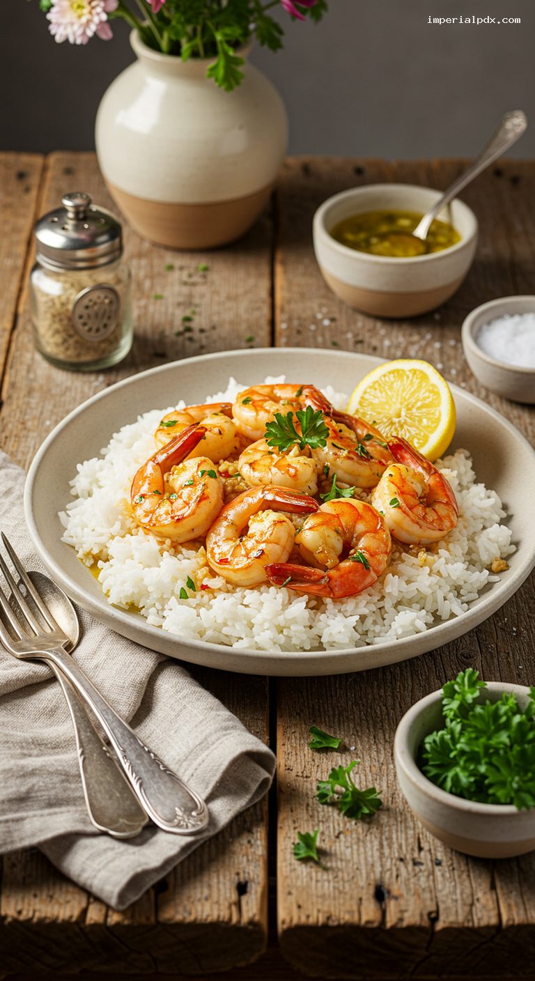 - 6. Spoon shrimp and garlicky butter over hot rice; finish with parsley and lemon wedges.