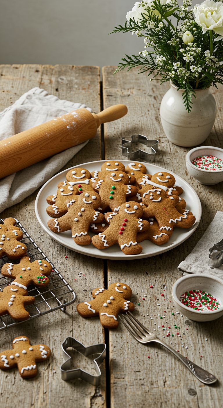 - Pantry: All-purpose flour; Dark brown sugar; Unsulfured molasses; Baking soda; Fine sea salt; Ground ginger; Cinnamon; Cloves; Allspice; Nutmeg; Black pepper (optional); Vanilla extract; Powdered sugar; Light corn syrup (optional); Holiday sprinkles