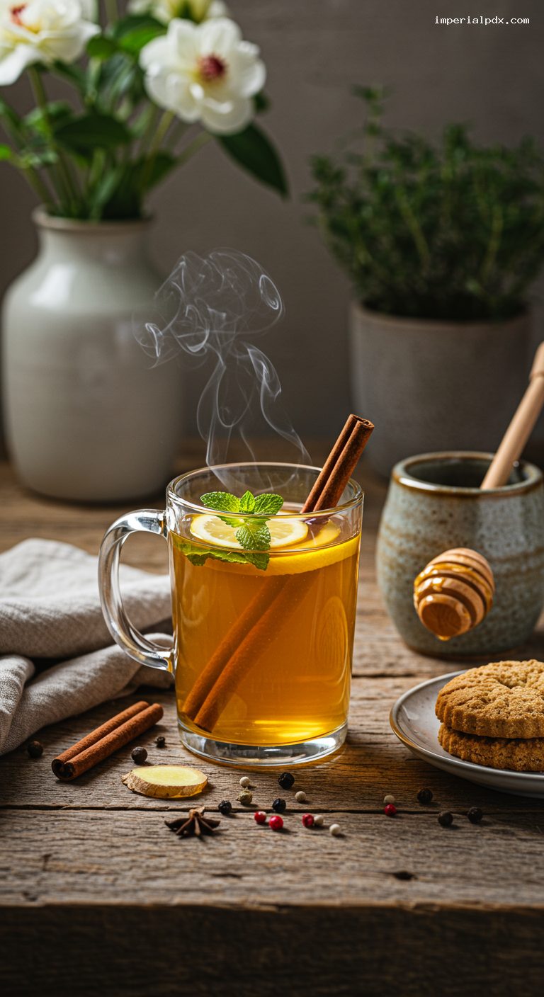 - Fragrant with cloves, cinnamon, ginger, and mint—comforting but not heavy.