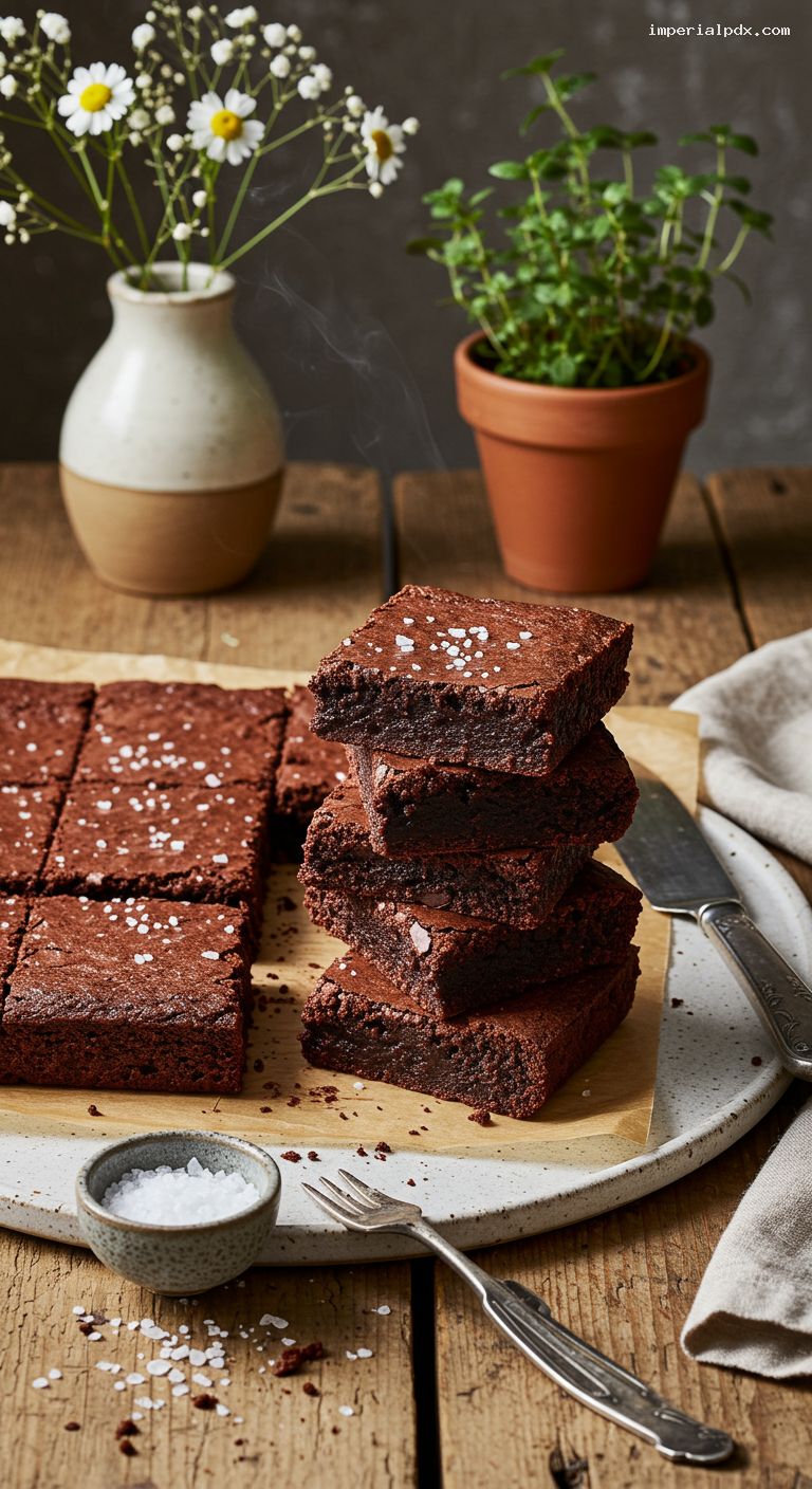 Cool the brownies in the pan on a rack for 30 minutes. Use the parchment sling to lift them out, then cool another 30 minutes to set the fudgy interior. For ultra-clean edges, chill 20–30 minutes before slicing into 16 squares with a sharp knife, wiping the blade between cuts. Finish with a pinch of flaky sea salt, if you like.