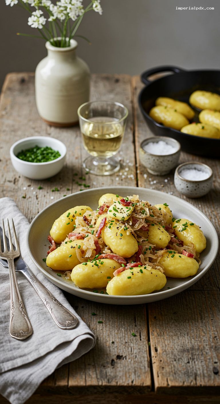 - Golden, pan-crisped potato noodles meet silky, buttery sauerkraut for the ultimate comfort food.