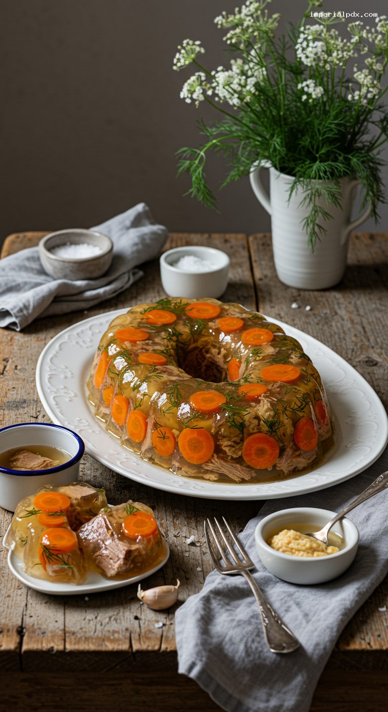 - Decor ideas: Place carrot coins and tiny dill sprigs in the bottom of molds before pouring broth for a classic look.