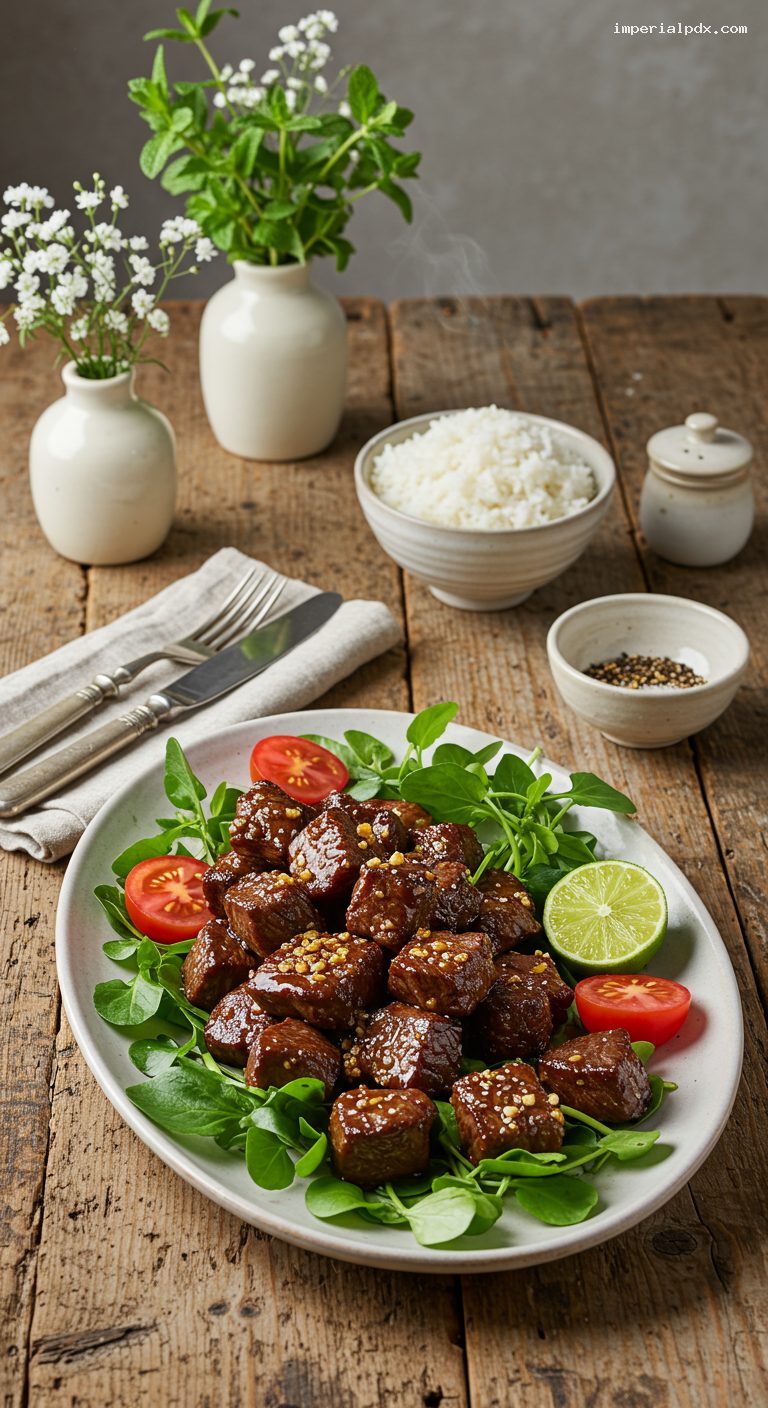 Repeat searing with the remaining beef; transfer to the plate. Lower heat slightly. Add butter to the pan; when foaming, add garlic and shallot. Stir 15–20 seconds until fragrant but not browned. Pour in soy sauce, oyster sauce, fish sauce, rice vinegar (or lime), water, sugar, and black pepper. Stir, scraping up browned bits. Return all beef to the pan and “shake” or toss vigorously for 30–60 seconds until the sauce thickens and coats the cubes in a glossy glaze. Remove from heat.