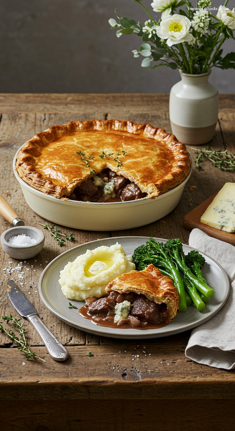 - Ultra-comforting: slow-cooked beef in a rich, glossy ale gravy with pockets of melty Stilton.