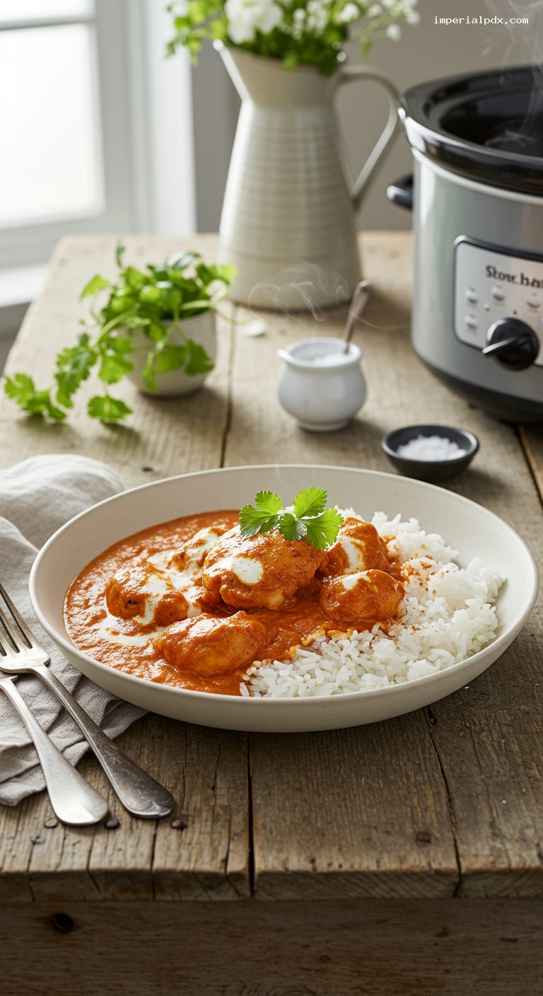 Switch the slow cooker to High and cook uncovered for 15–20 minutes to slightly reduce and thicken the sauce. If you prefer a thicker sauce, stir in 1 tbsp tomato paste. Stir in the heavy cream, remaining 1/2 tbsp garam masala, and 1 tbsp butter until glossy and velvety. Taste and adjust salt; add a squeeze of lemon juice if you want extra brightness.