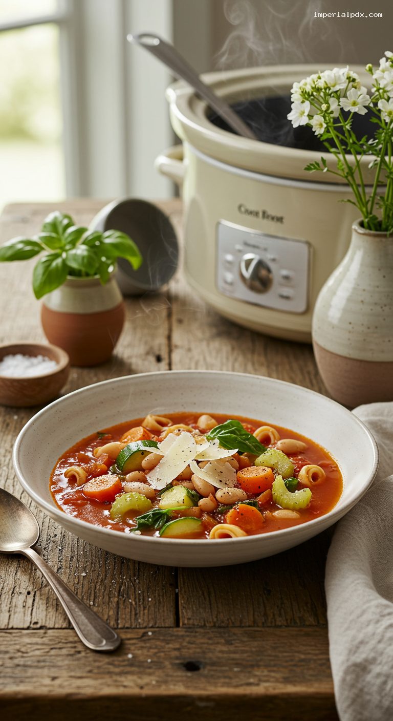 Cover and cook on Low for 6 hours (or on High for 3 hours), until the vegetables are tender and the broth tastes rich and savory. Avoid lifting the lid so heat stays consistent.