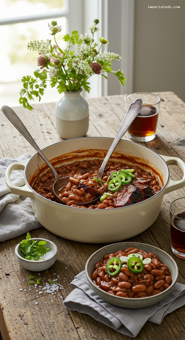 - Vegetarian Smoky Beans: Skip brisket; sauté 2 tbsp olive oil with aromatics. Add 1 tsp smoked paprika (total 2 tsp) and a tiny 1/4 tsp liquid smoke. Use vegetable broth.