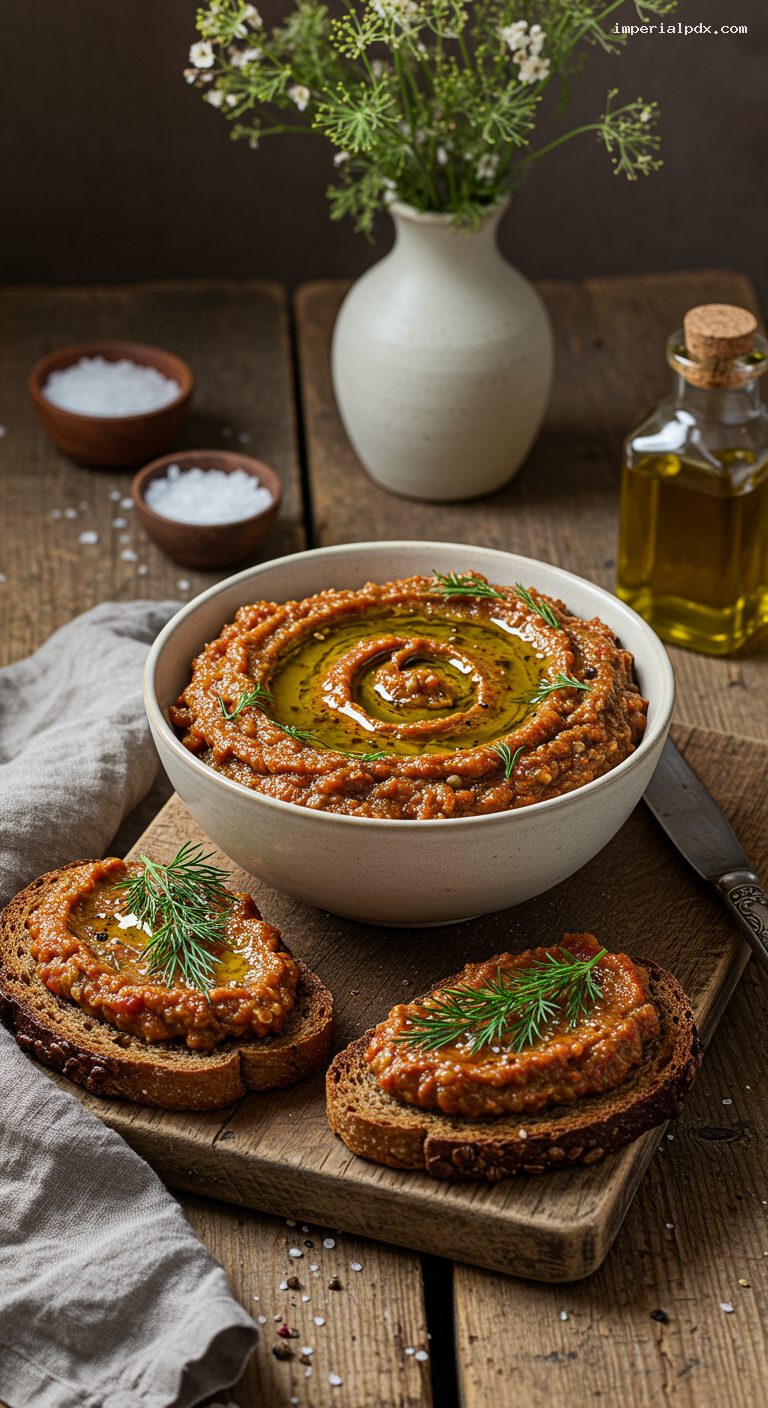 Refrigerate in an airtight container up to 1 week. For best quality, smooth the surface and cover with a thin layer of sunflower oil before sealing. Freeze up to 2–3 months; thaw overnight in the fridge and stir in a squeeze of vinegar to refresh. The spread tastes even better after 12–24 hours as the flavors meld. Bring to cool room temperature before serving.