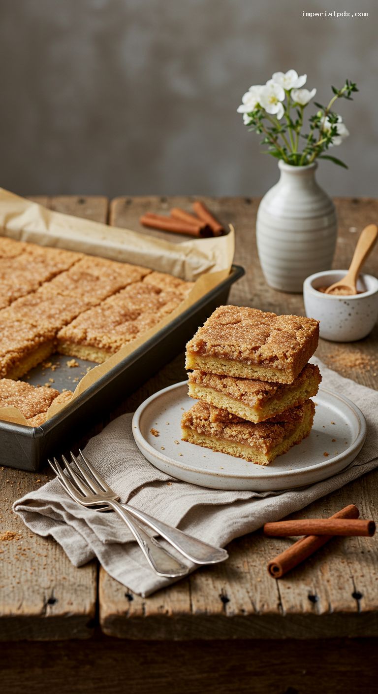 Store bars airtight at room temperature for up to 4 days. For longer storage, wrap bars tightly and freeze for up to 2 months; thaw at room temperature. To refresh, warm bars on a sheet pan at 300°F (150°C) for 5–7 minutes. You can mix the batter up to 24 hours ahead and refrigerate; bring to room temperature so it spreads, then assemble with the cinnamon-sugar and bake.