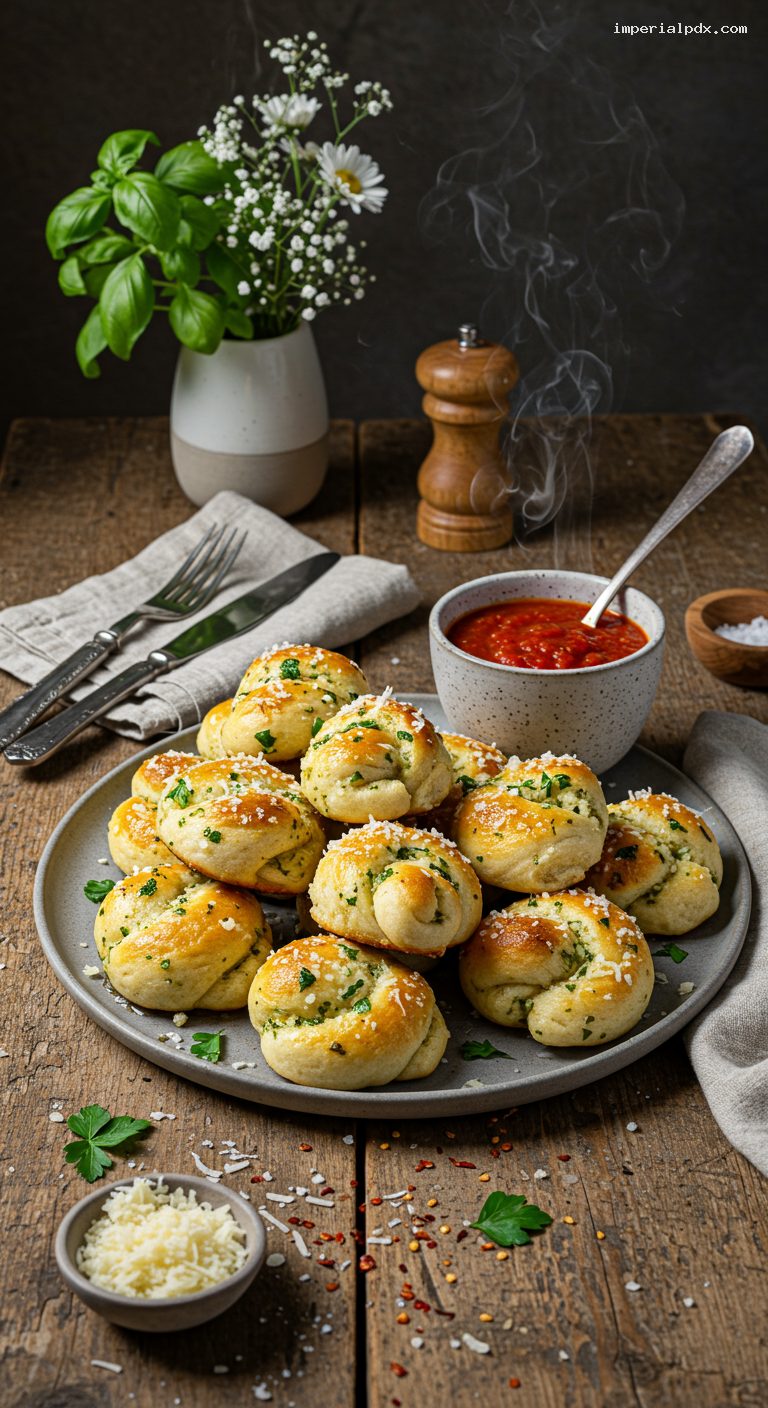 Store baked knots in an airtight container at room temperature for 1 day or refrigerate up to 3 days. Reheat at 300°F (150°C) for 8–10 minutes or in an air fryer at 320°F (160°C) for 3–4 minutes; re-brush with a little melted butter if desired. Freeze baked knots up to 2 months; reheat from frozen at 325°F (165°C) for 12–15 minutes. For make-ahead, refrigerate the dough after kneading for up to 24 hours, or shape the knots, cover, and chill up to 12 hours; bring to room temp and finish proofing before baking. Marinara keeps refrigerated 5 days or frozen 2 months.
