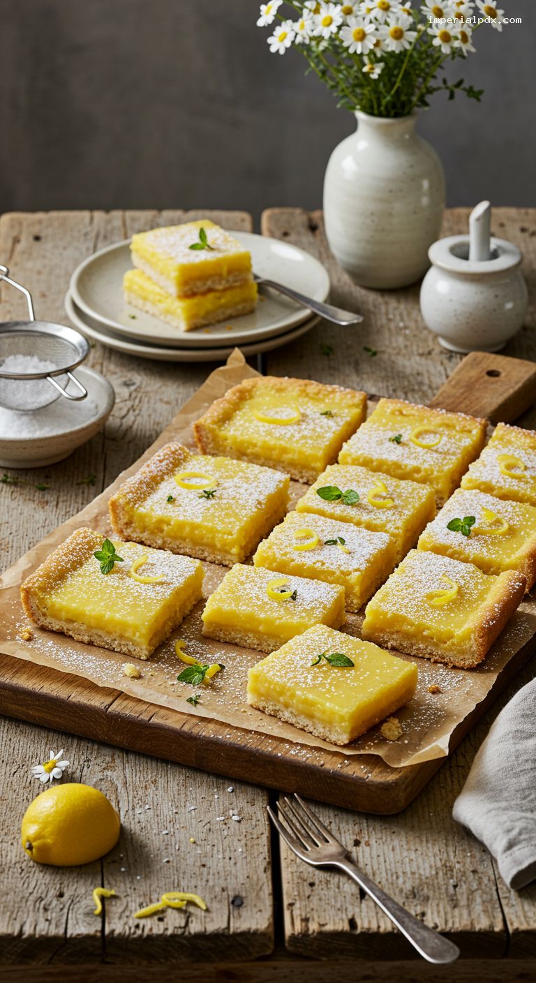 - Bright, tangy lemon custard balanced by a buttery, tender shortbread base.