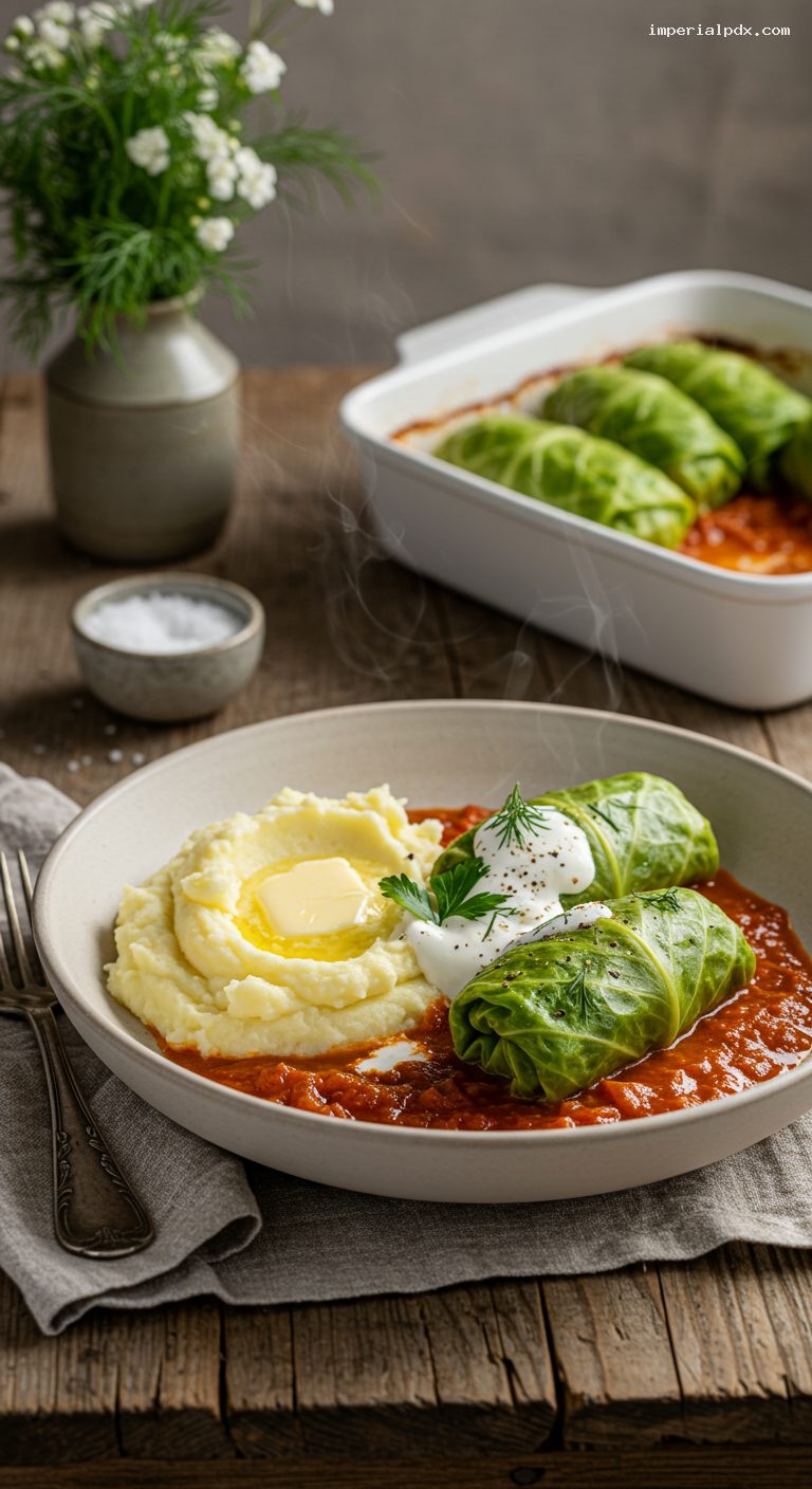 - Classic comfort: tender cabbage wrapped around juicy beef-pork filling in a velvety, tangy tomato–sour-cream sauce.