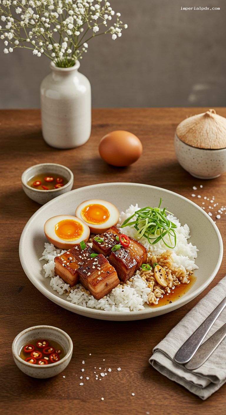 - Pantry: Pork belly (2 lb/900 g), eggs (6), unsweetened coconut water (3 cups), fish sauce, granulated sugar or light palm sugar, black pepper, jasmine rice