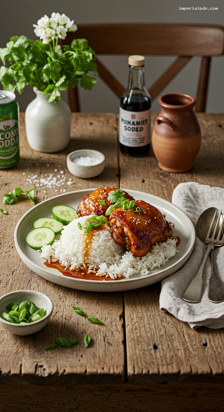 - Pantry: Chicken thighs, fish sauce, low-sodium soy sauce, light brown sugar, Chinese five-spice, black pepper, neutral oil, coconut soda (12 oz can), jasmine rice